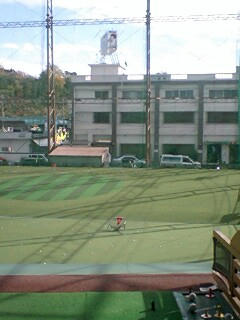 只今、ゴルフの打ちっ放し場に来ております