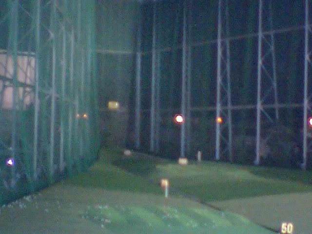 写真は、昨日会社帰りに行った練習場。ちと解りづらいけど、割と広い練習場だったので結構気持ちよく打てたね!で、ボールの飛んでいく方向はと言うと・・・内緒(笑)
