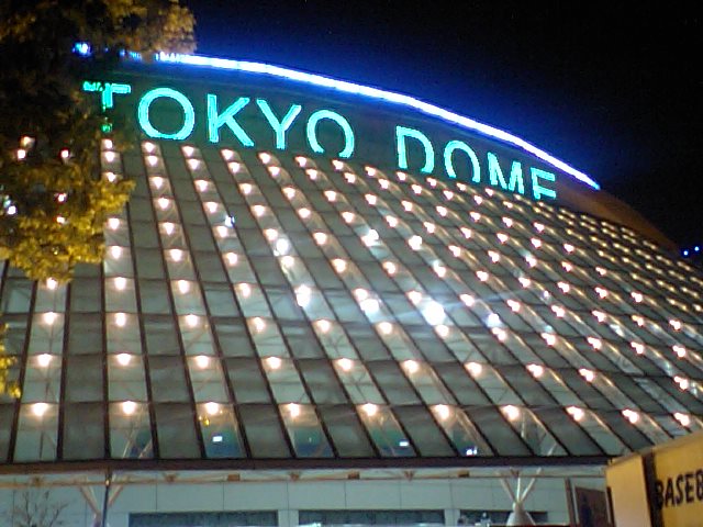 3枚目⇒ライトアップされた東京ドーム・・・試合が終わってドームを出たとこで撮りました。周りが暗いのでドームが浮き上がってる感じがしました。